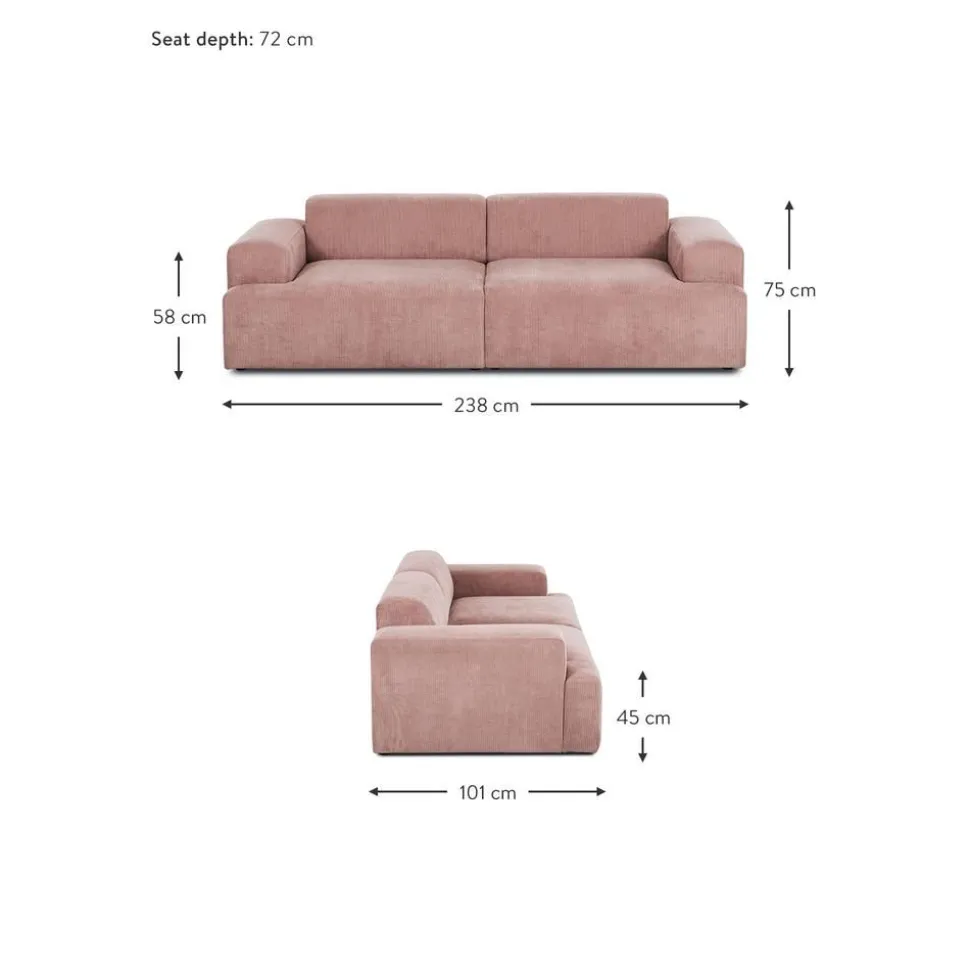 Divano 3 Posti In Velluto A Coste Melva