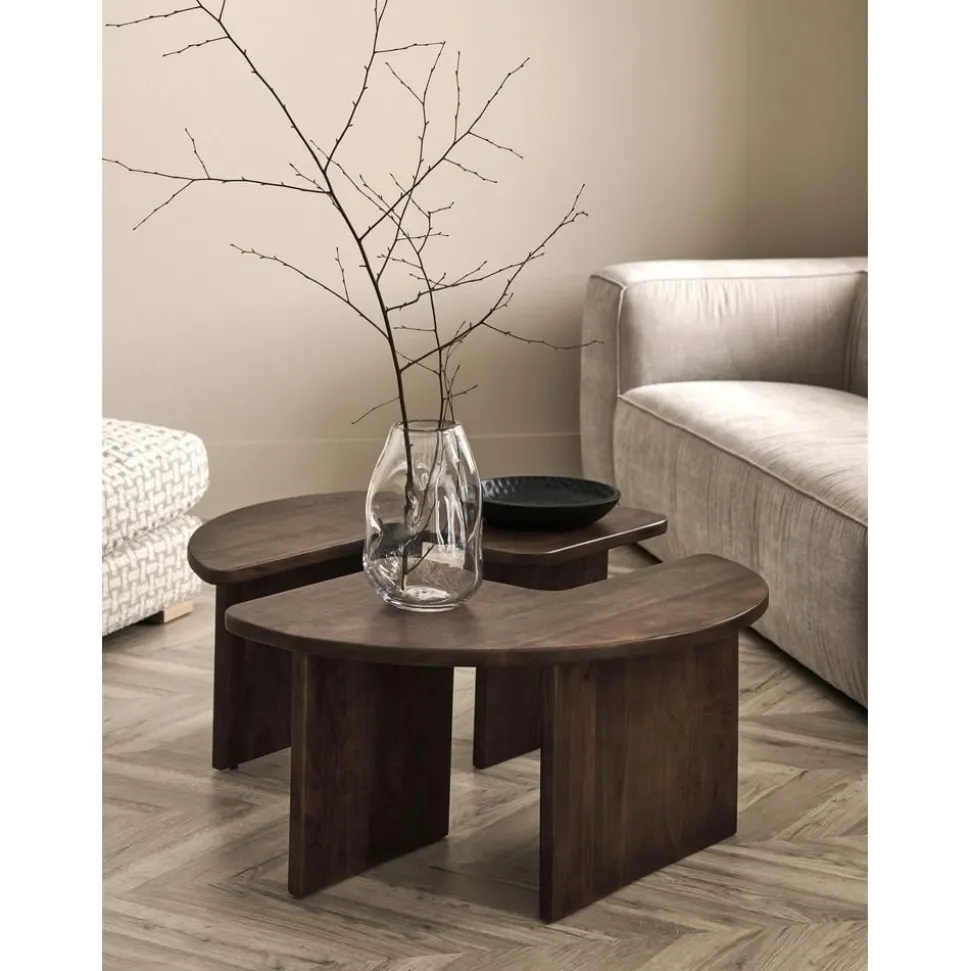 Tavolino Da Salotto Rotondo In Legno Di Mango Match 2 Pz