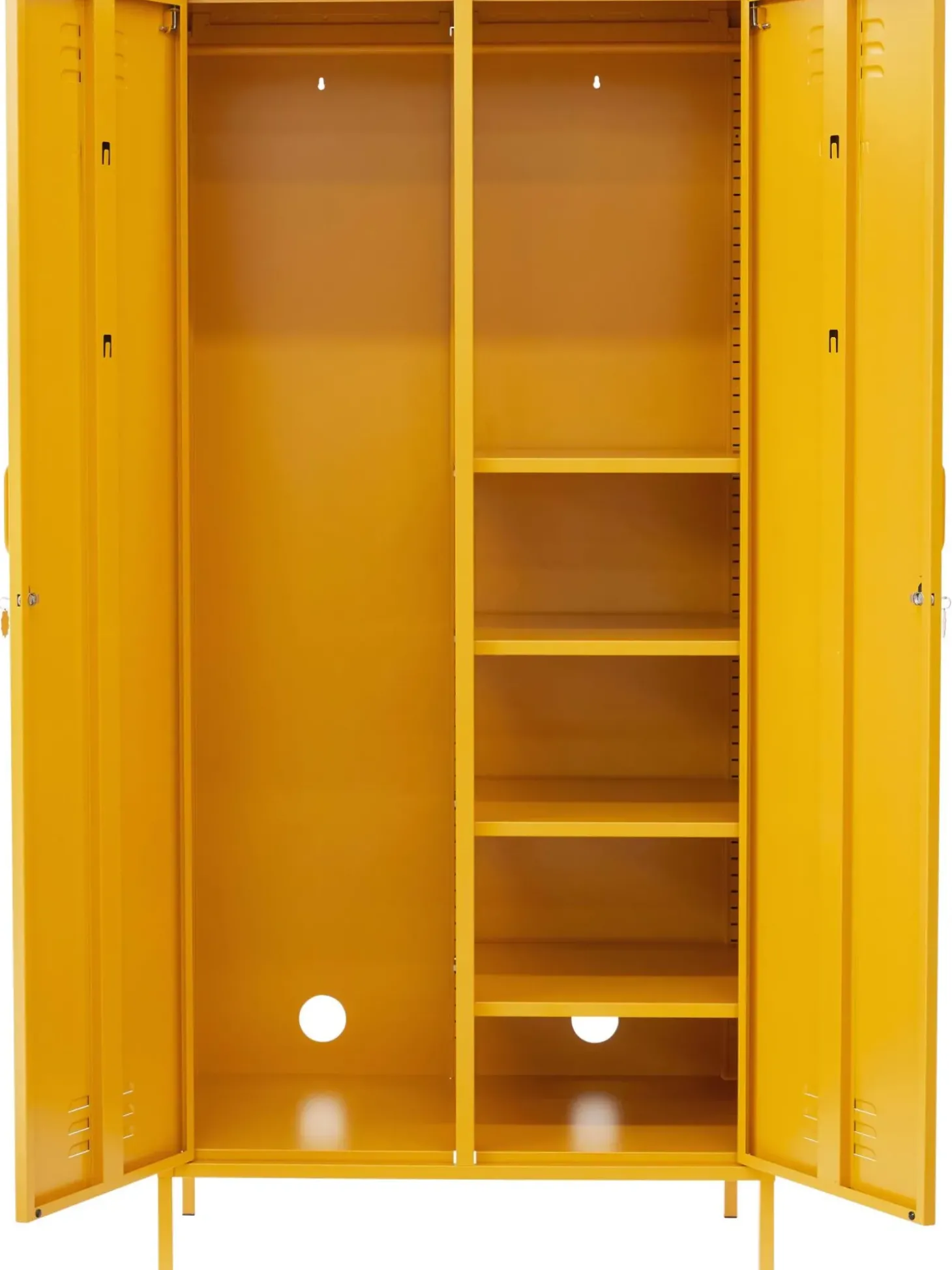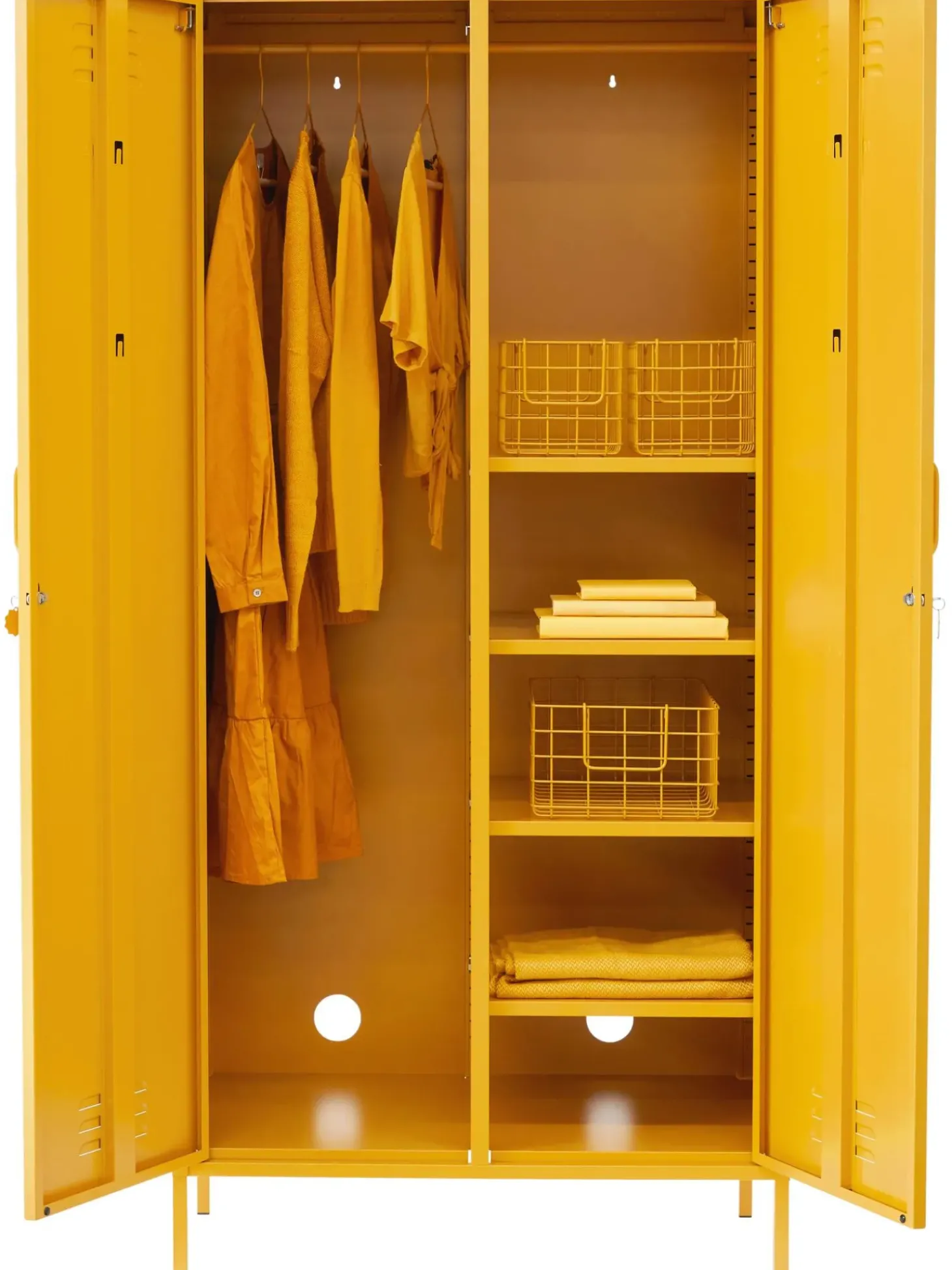 L’Armadio U00E8 Dotato Di Due Bastoni Appendiabiti E Quattro Ripiani Regolabili In Altezza.