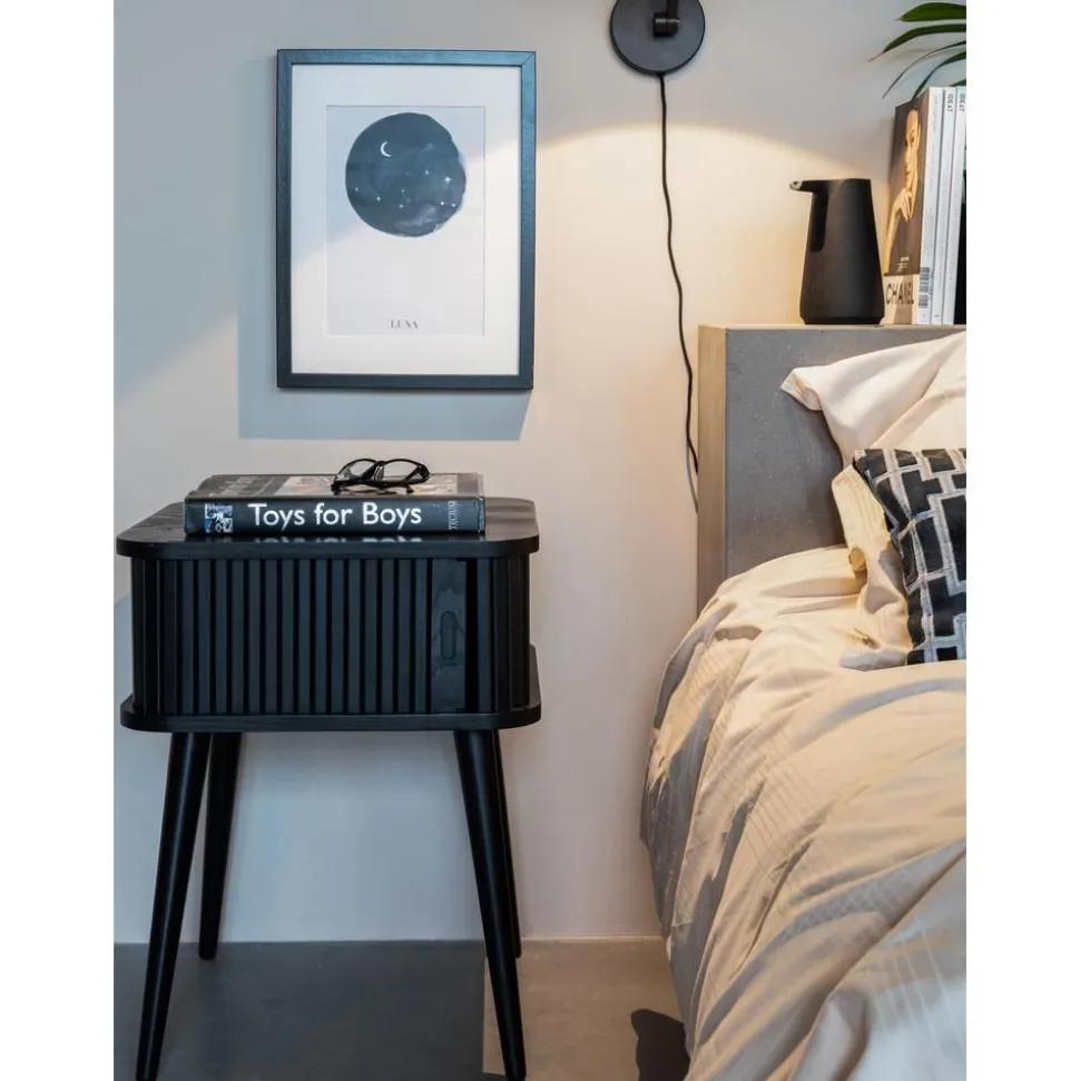 Comodino In Legno Con Anta Scorrevole E Frontale Scanalato Barbier