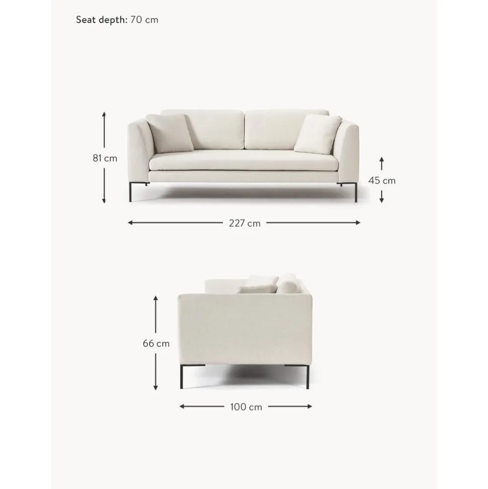 Divano 3 Posti Con Piedini In Metallo Emma