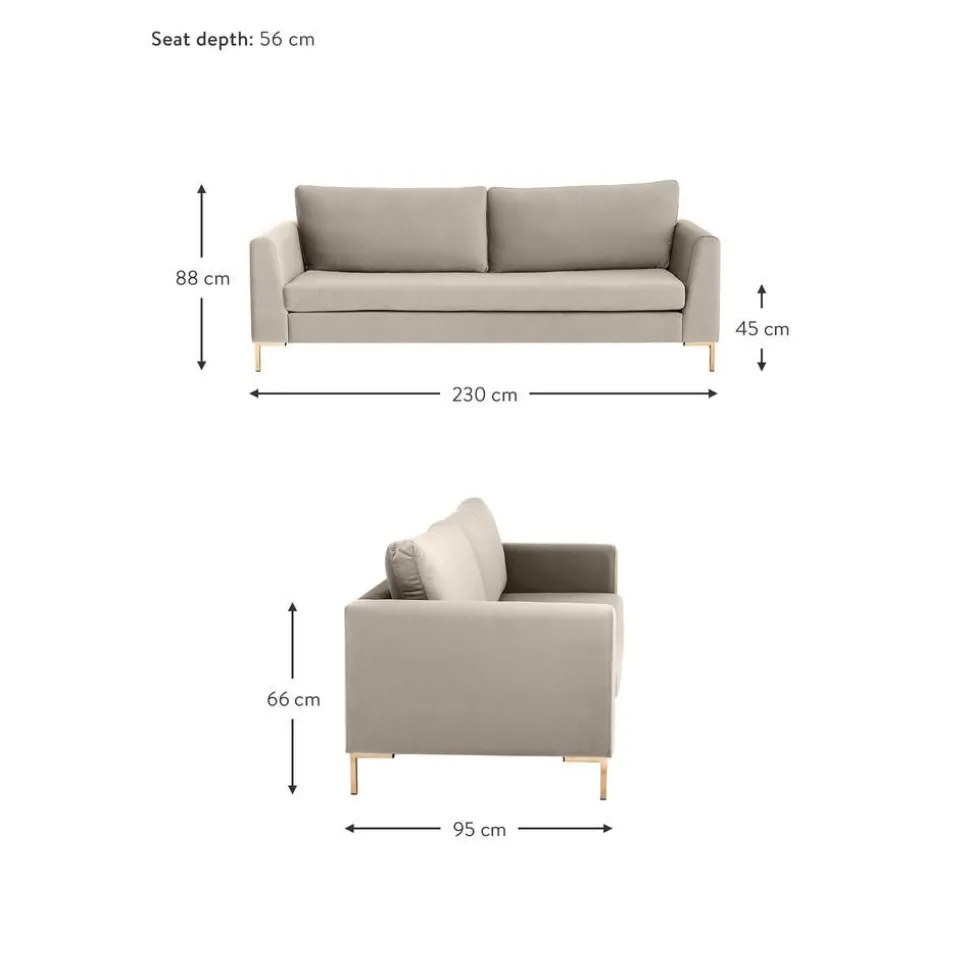 Divano 3 Posti In Velluto Luna