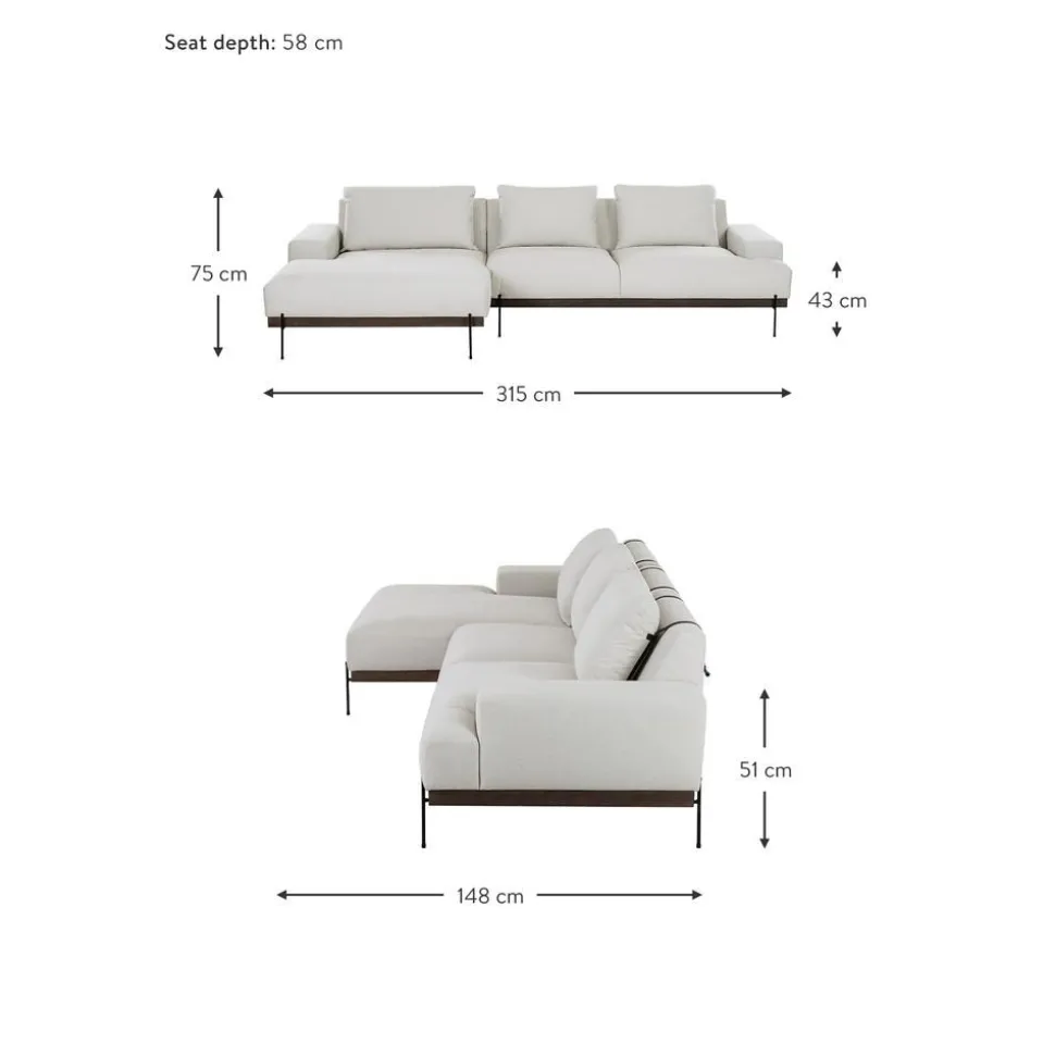 | Misurare | 315 x prof. 148 cm, chaise-longue a destra, 315 x prof. 148 cm, chaise-longue a sinistra |