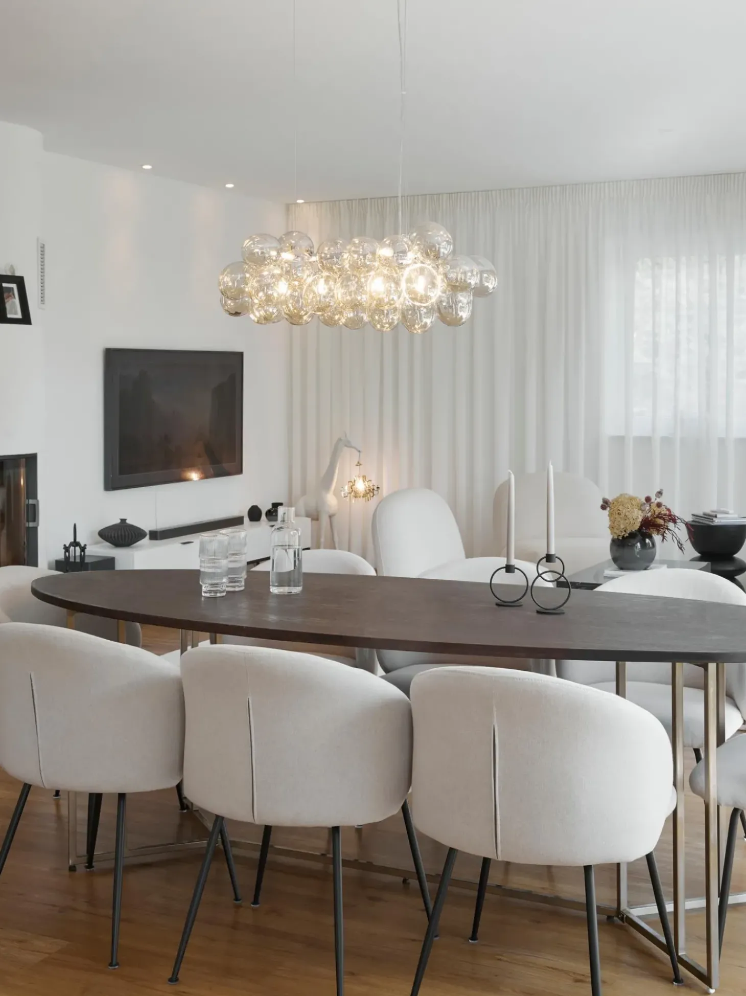Lampada A Sospensione Di Design Con Sfere Ovali In Vetro Soffiato E Lavorato A Mano.Nnmade In Germanynnluce Regolabile In Combinazione Con Lampadina Dimmerabile E Un Dimmer Esterno.Nper La Giusta Atmosfera Luminosa, Si Consiglia Di Utilizzare Lampade A Led Con Un Massimo Di 2 Watt.Nperfetta Per L’Illuminazione Sopra Lunghi Tavoli.