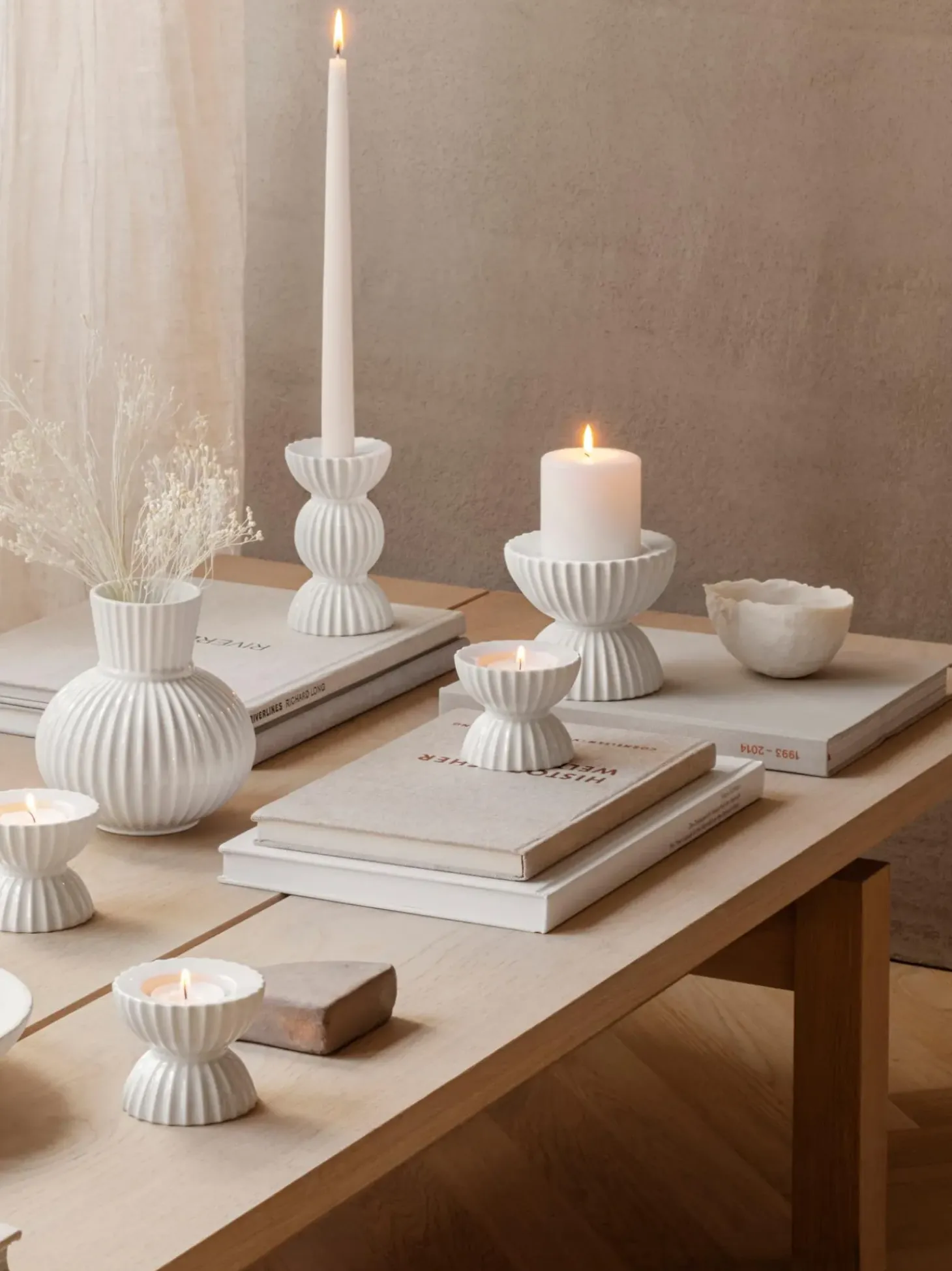 Portalumino In Porcellana Con Superficie Scanalata Tura