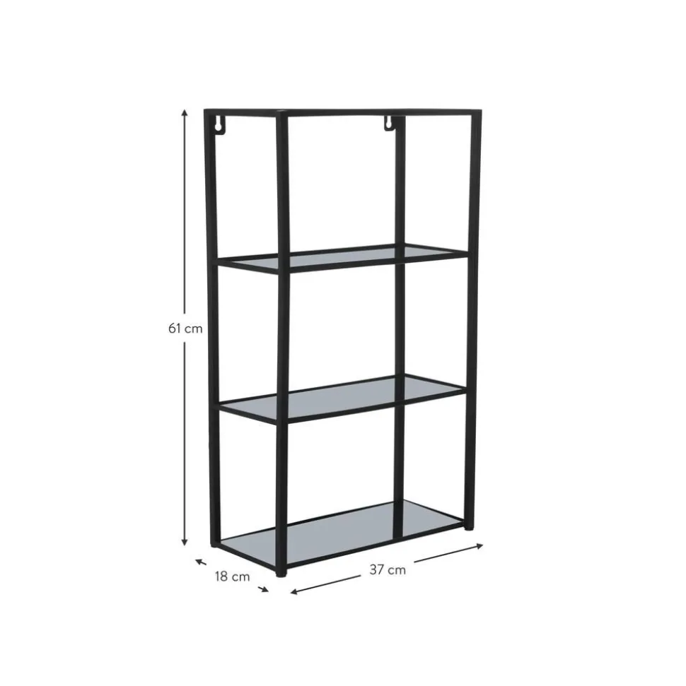 Scaffale Da Parete In Metallo Verniciato A Polvere Con Ripiani In Vetro Fumu00E8. Modello Elegante E Lineare Con Fori Per Il Fissaggio A Parete.