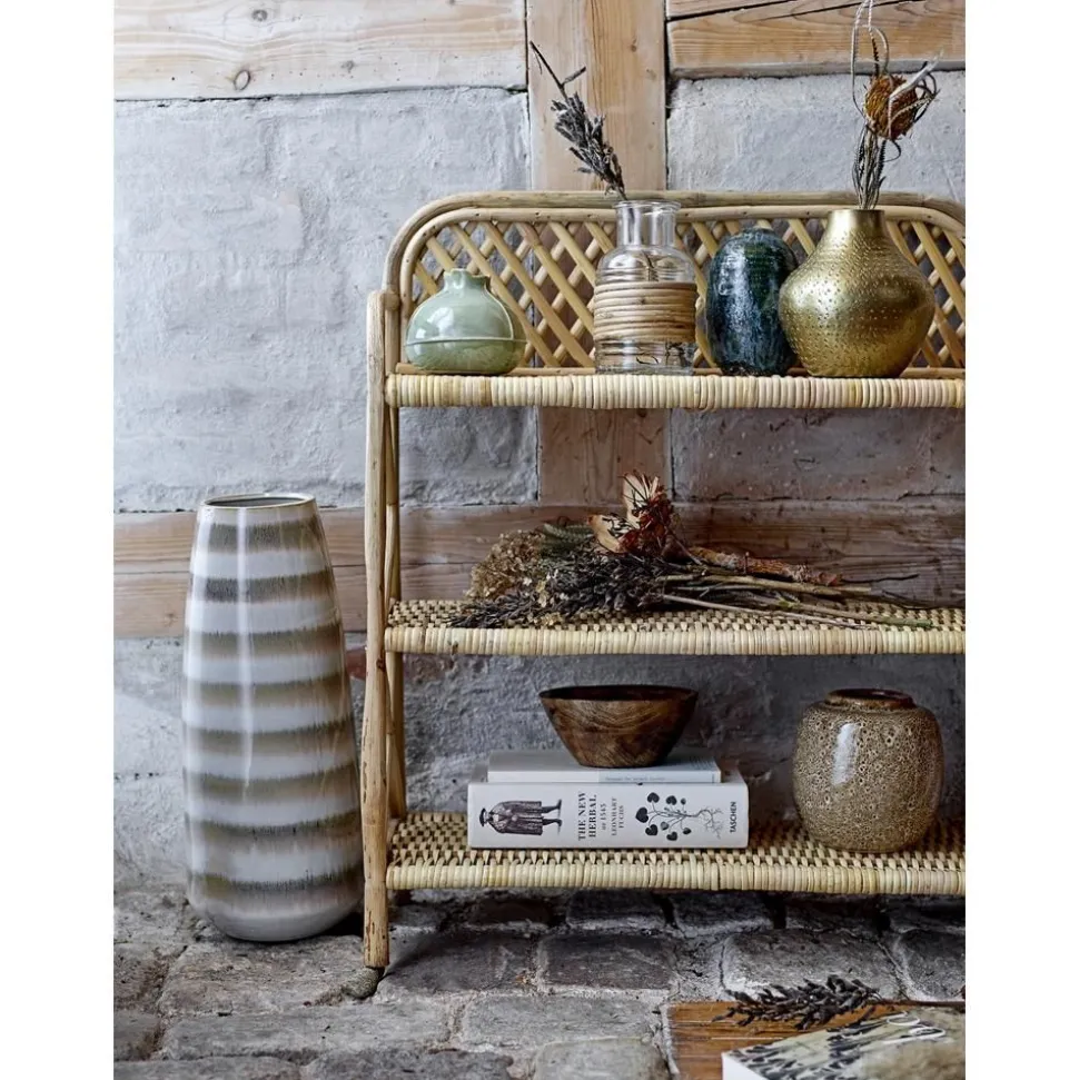 Piccolo Scaffale Da Pavimento In Materiale Naturale In Stile Bohonn- 3 Ripianin- Capacitu00E0 Di Carico Max.: 5 Kg Per Ripianonnlo Scaffale Viene Consegnato Giu00E0 Montato.