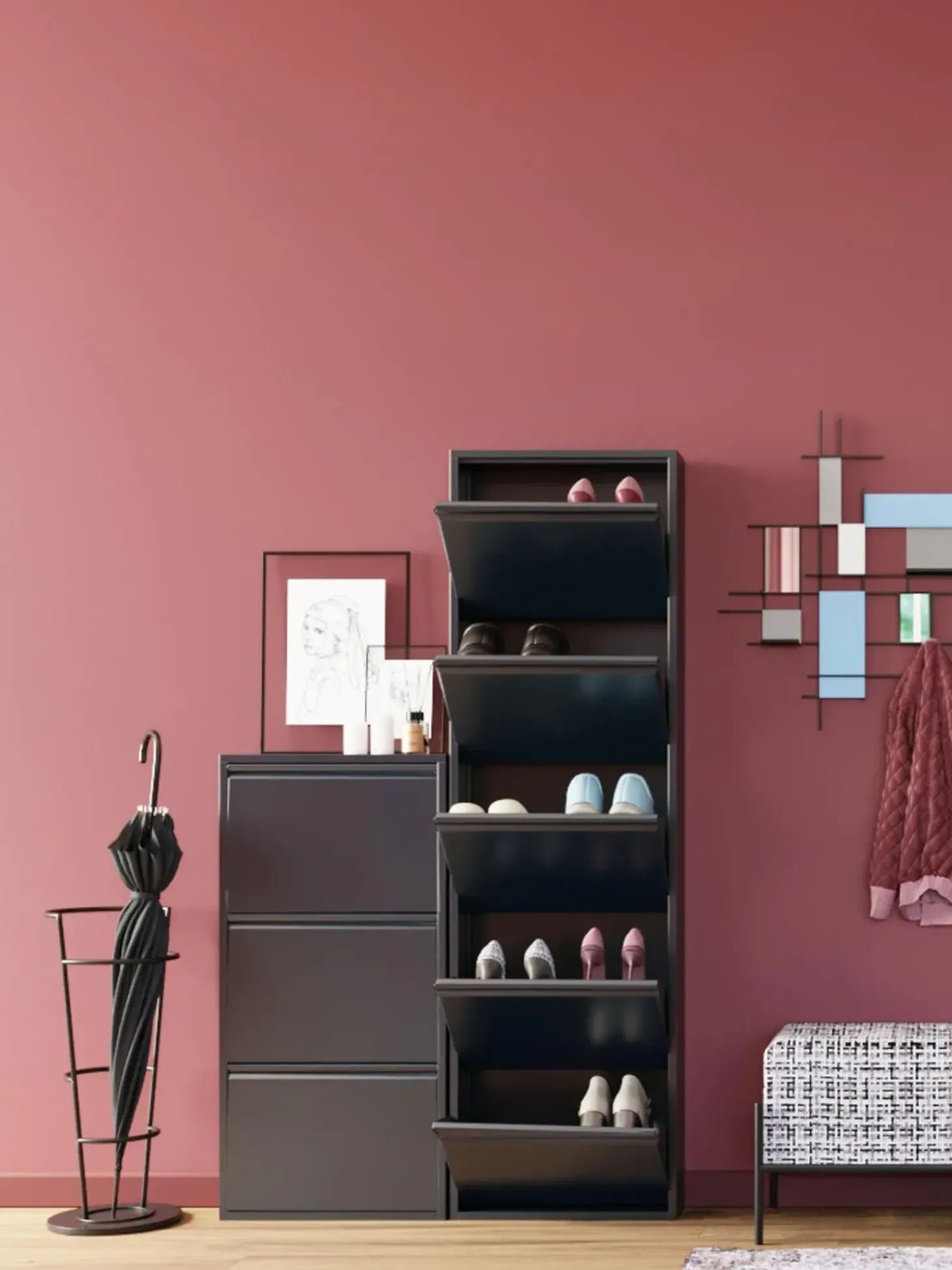 Scarpiera Da Parete Con Scomparti A Ribalta Caruso