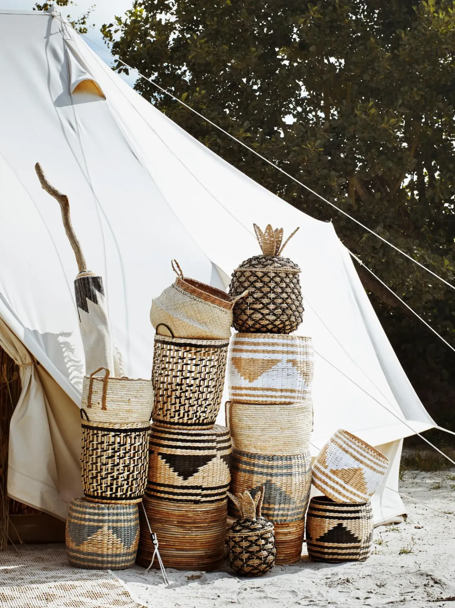 Set 2 Cesti Portaoggetti In Vimini Di Giunco Pyramid