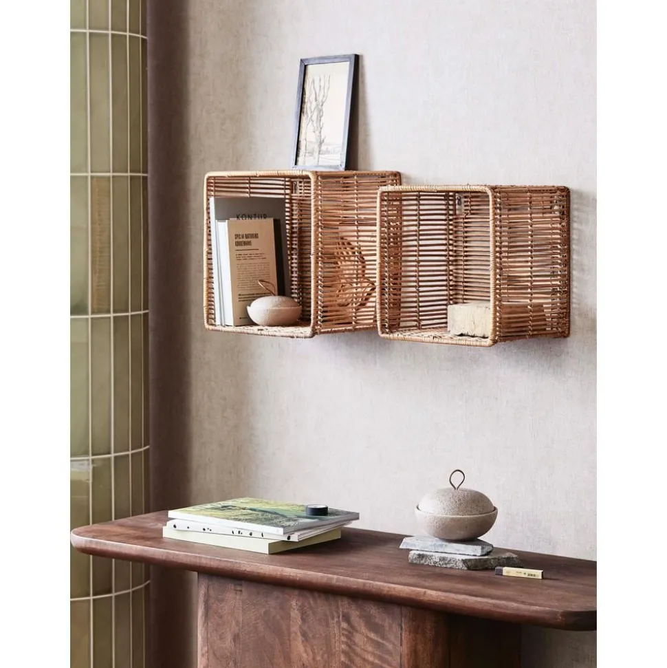 Set 2 Mensole Da Parete In Rattan Zeya