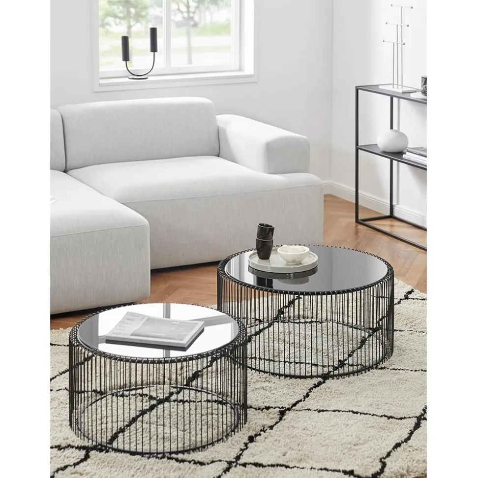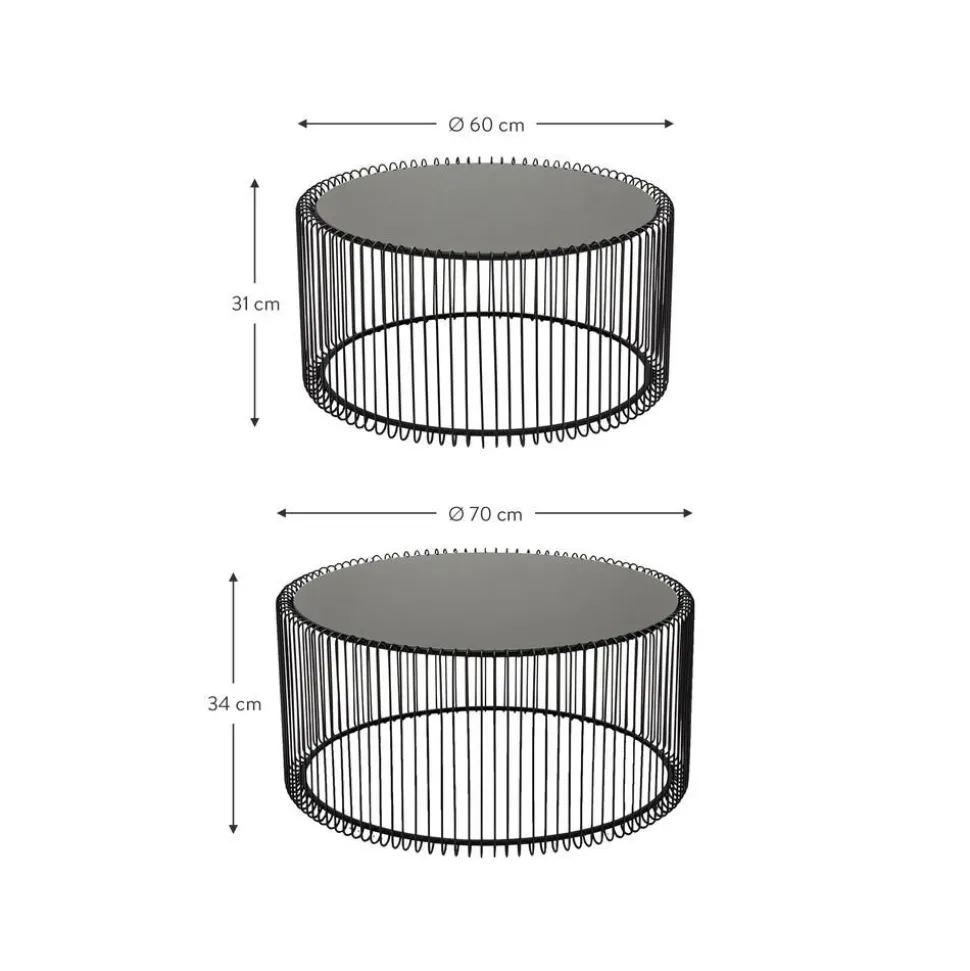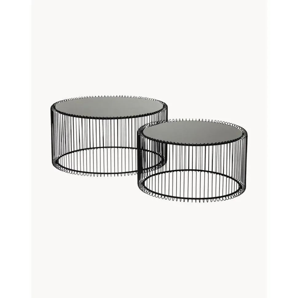 Set 2 Tavolini Da Salotto Con Piano In Vetro Wire
