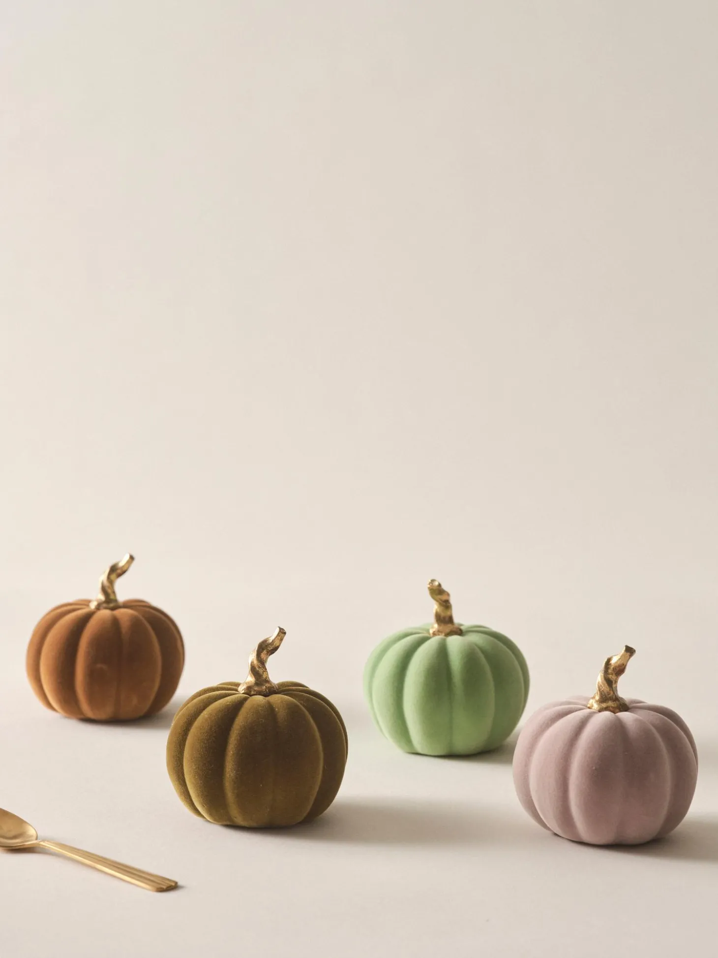 – 4 Zucche Decorative In Velluto In Diversi Colorin- Ogni Zucca Ha Un Piccolo Gambo Color Oro