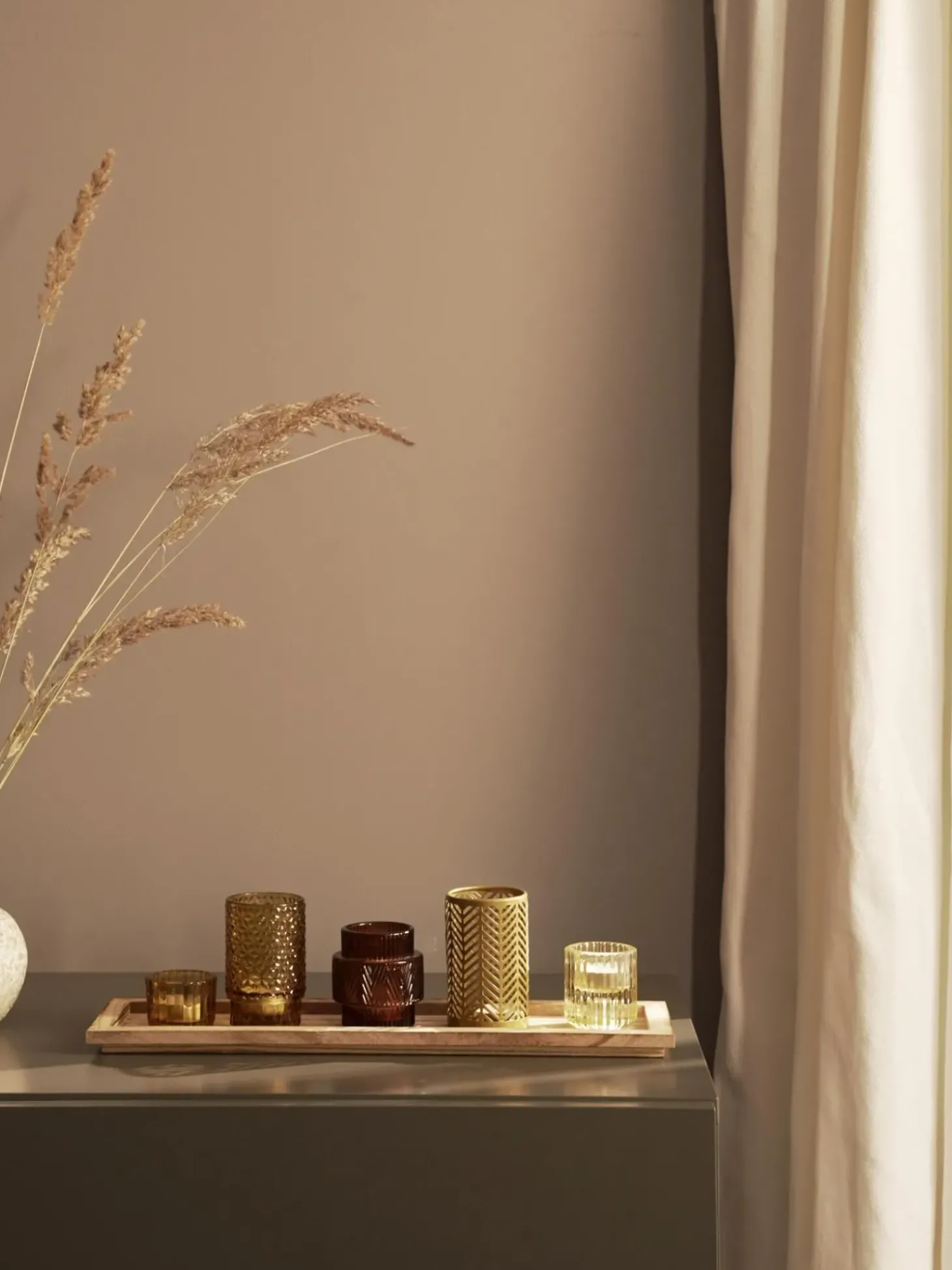Set Portacandele Con Vassoio In Legno Elviena 6 Pz