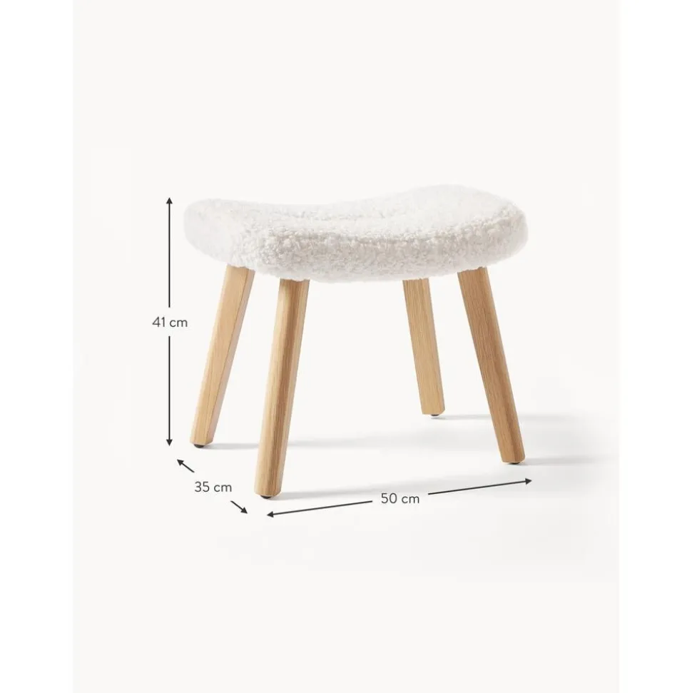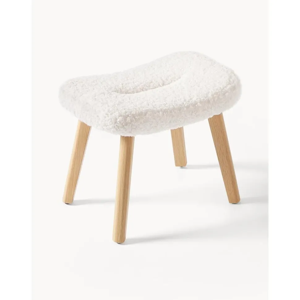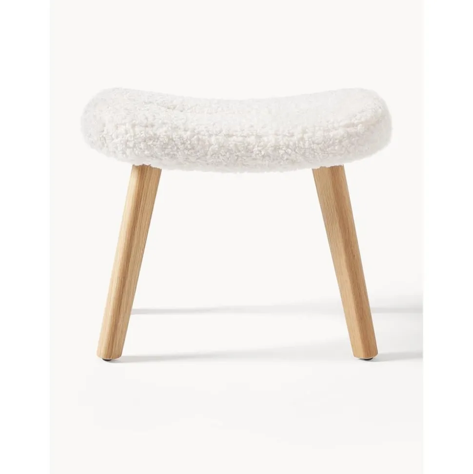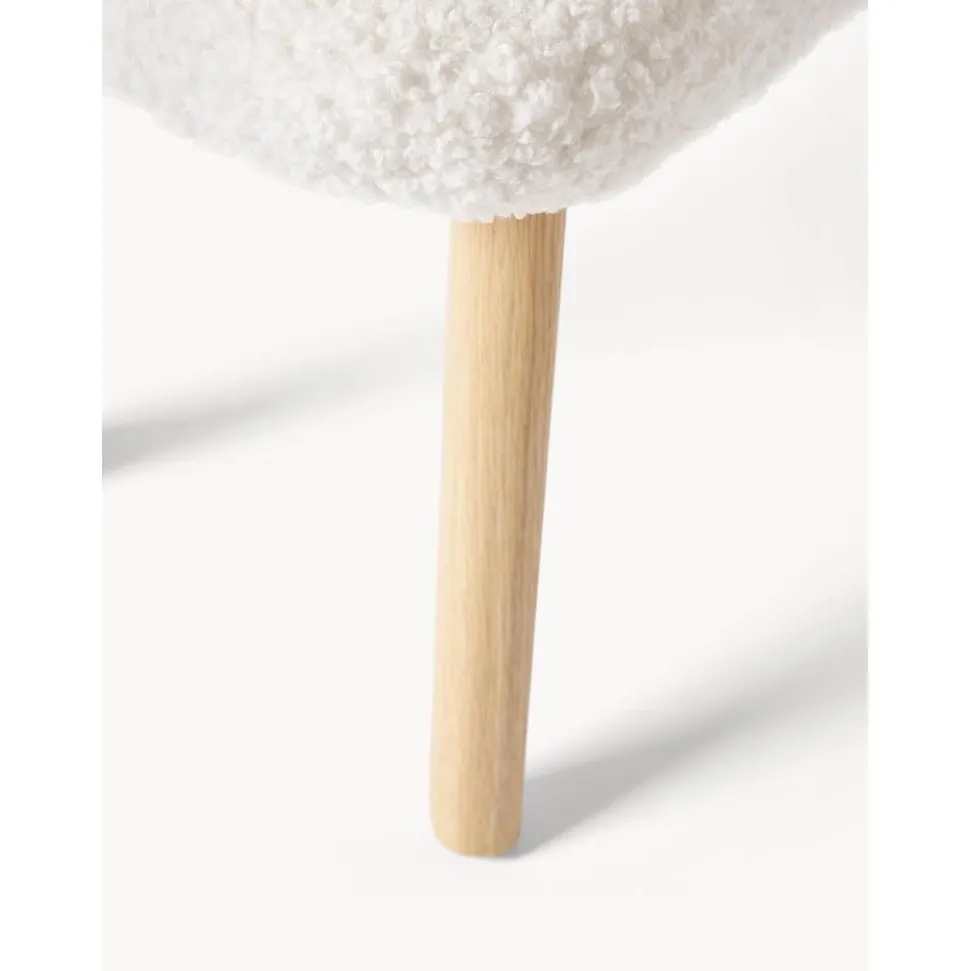 Sgabello Imbottito In Teddy Con Gambe In Legno Wing