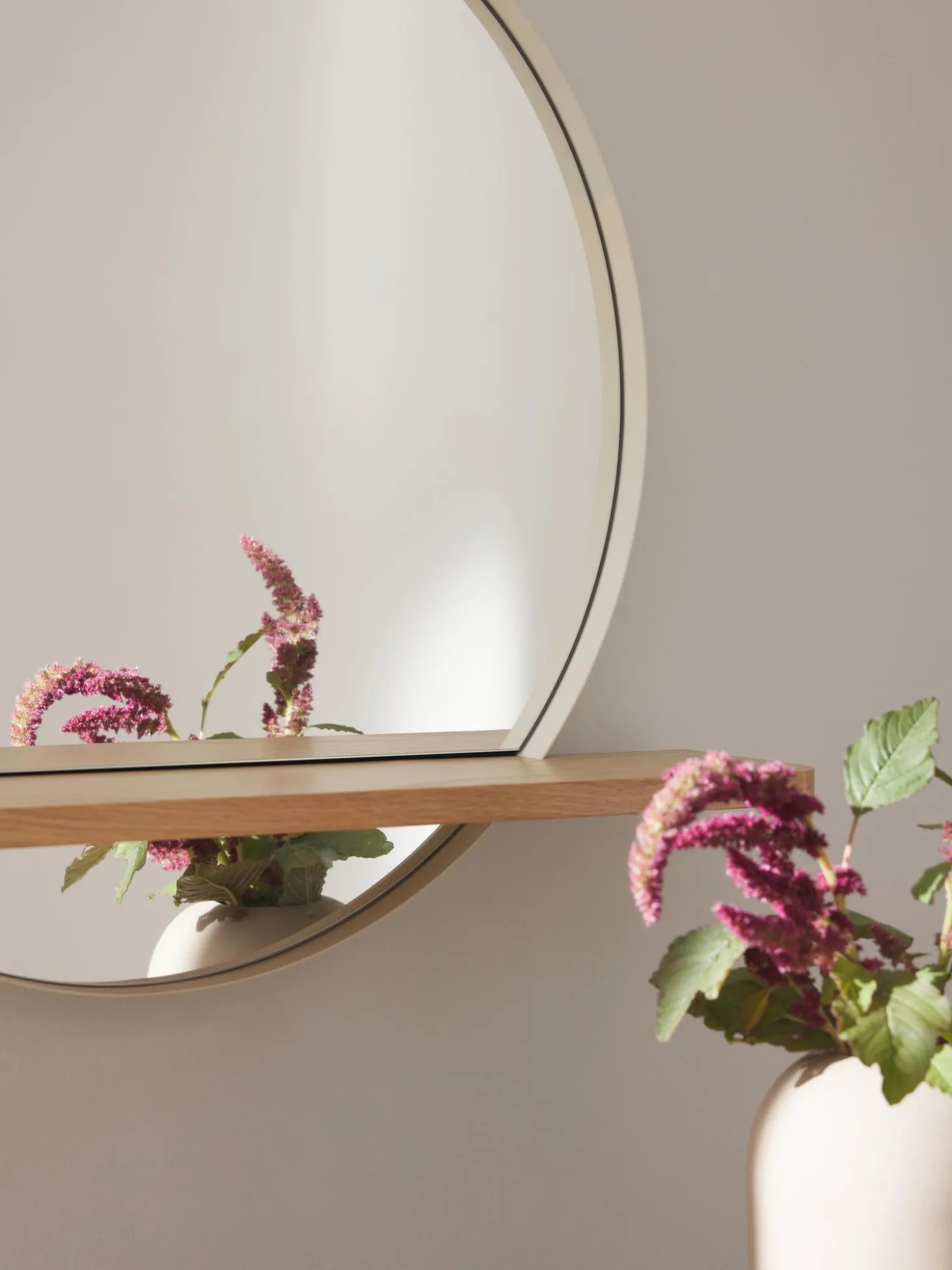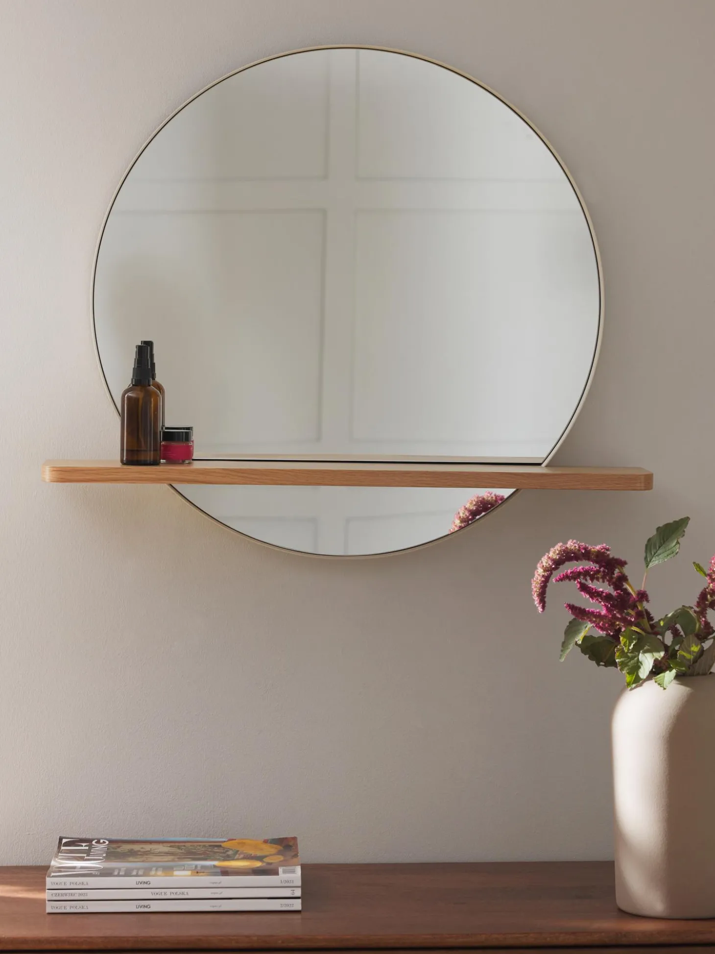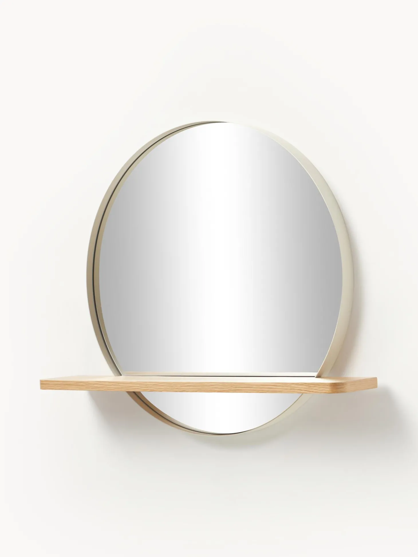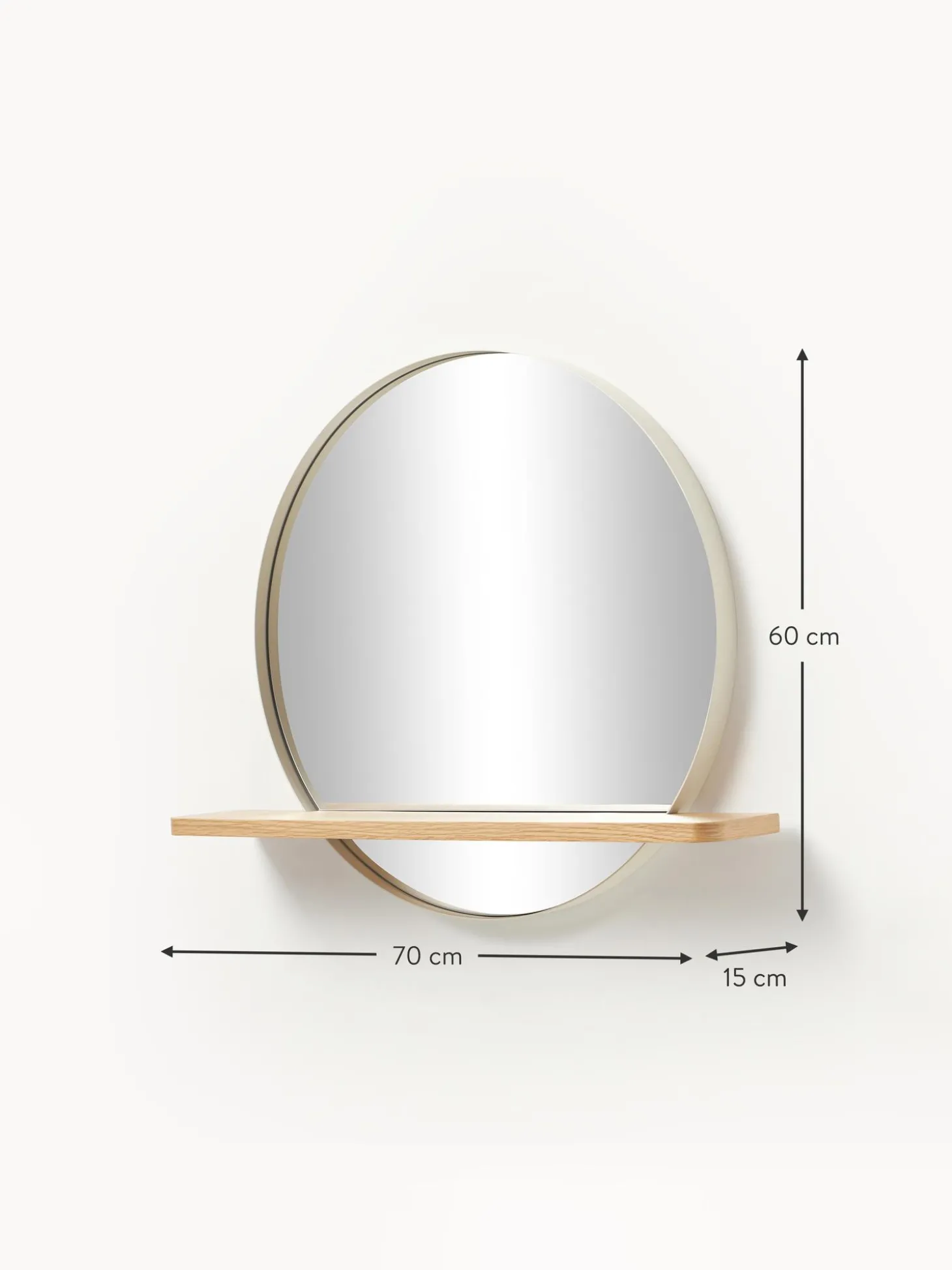 Specchio Da Parete Rotondo Con Mensola In Legno Aaron