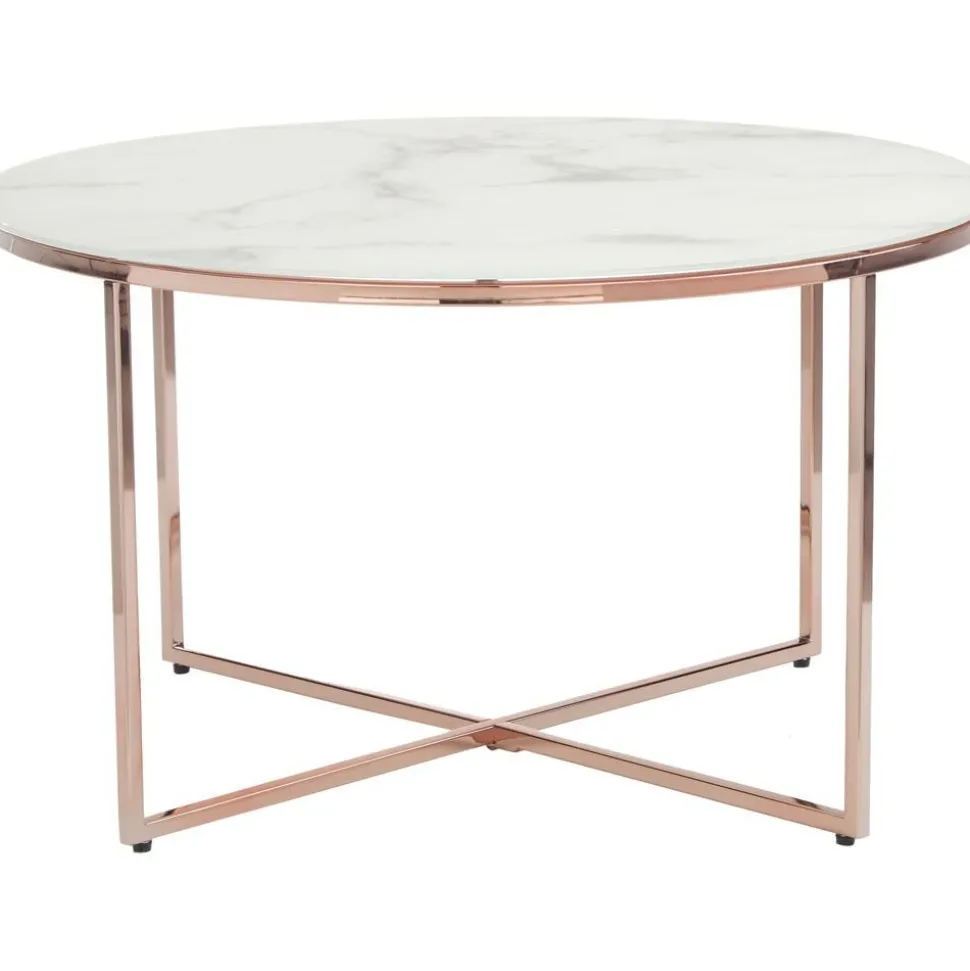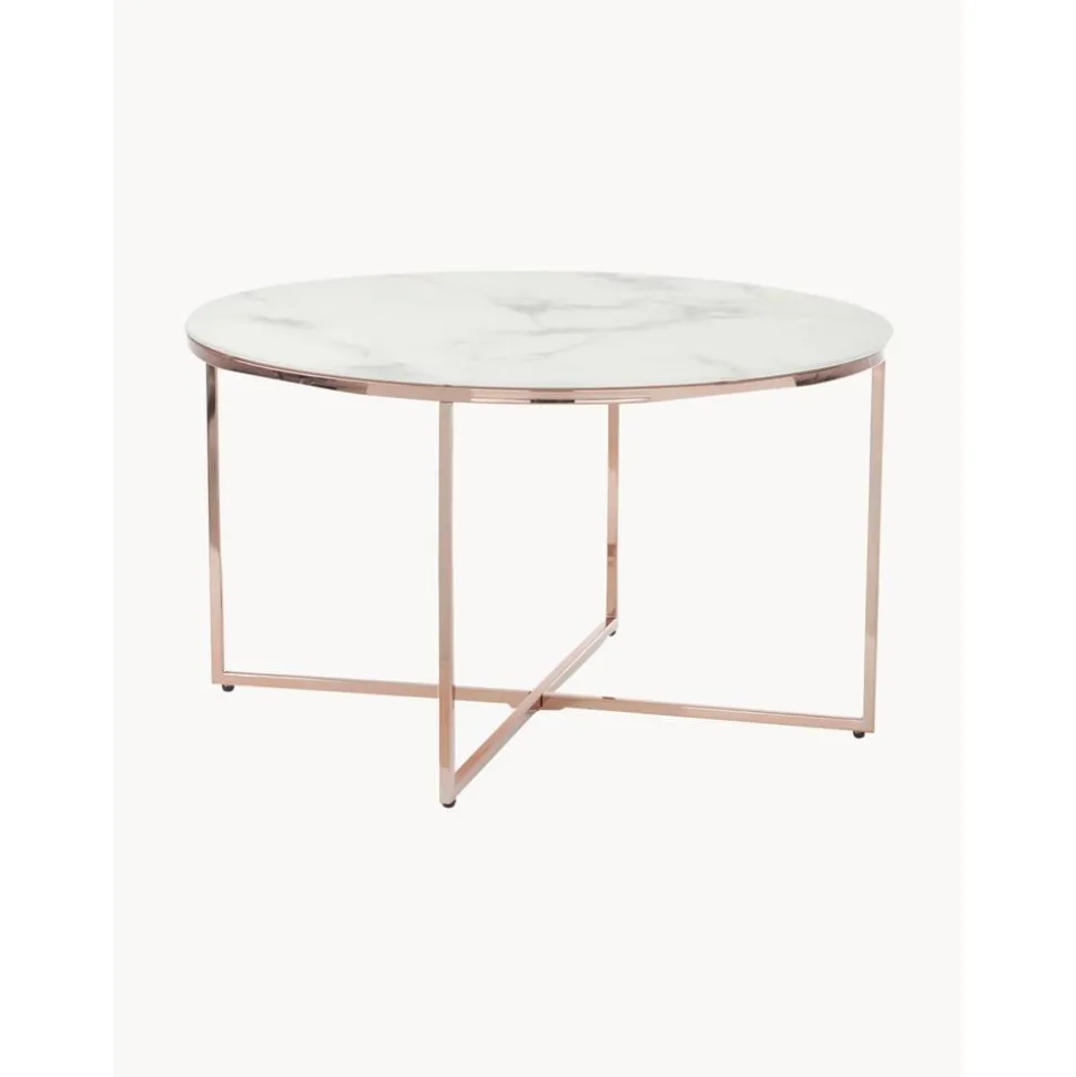 Tavolino Rotondo Da Salotto Con Piano In Vetro Effetto Marmo Antigua
