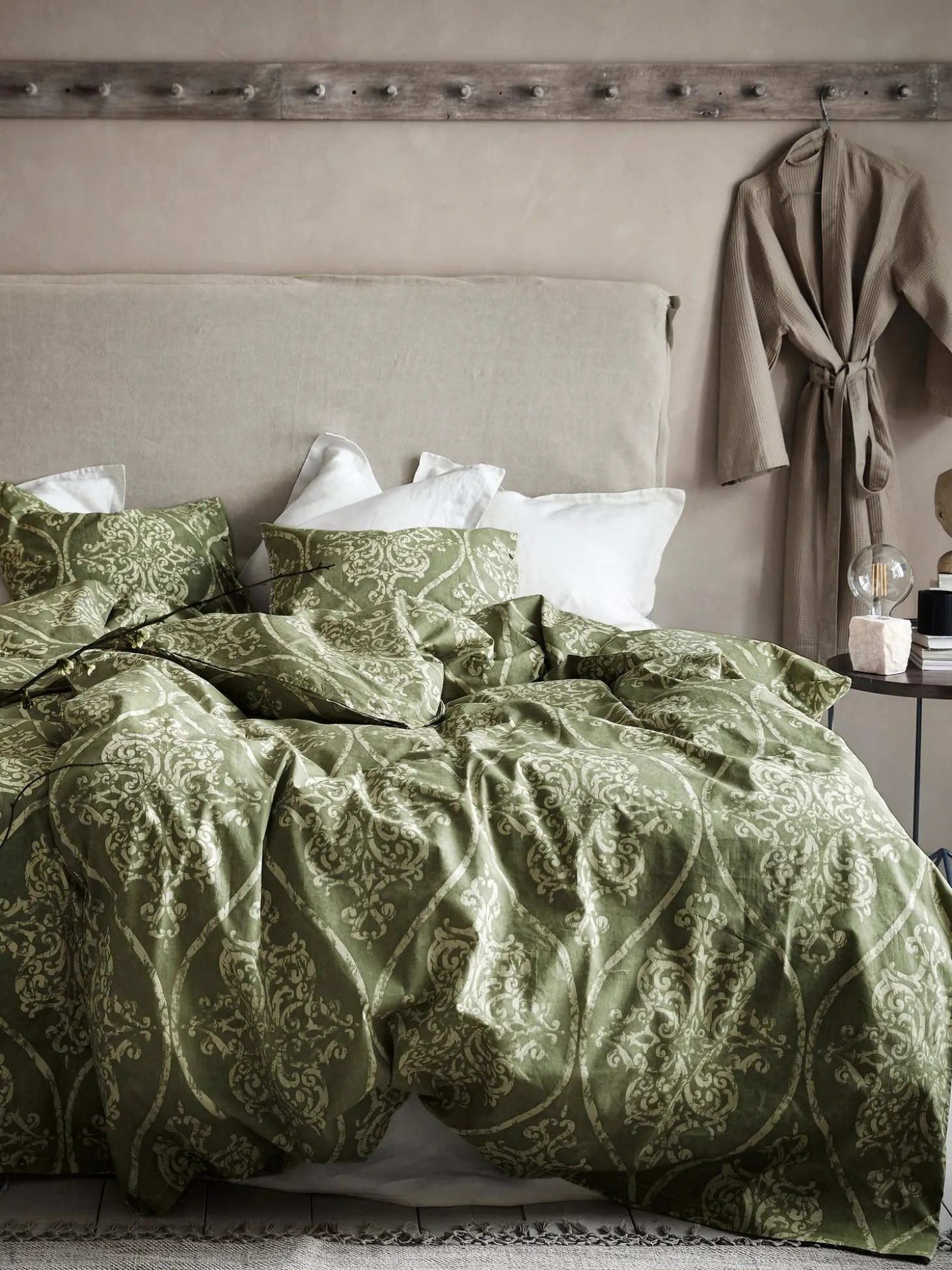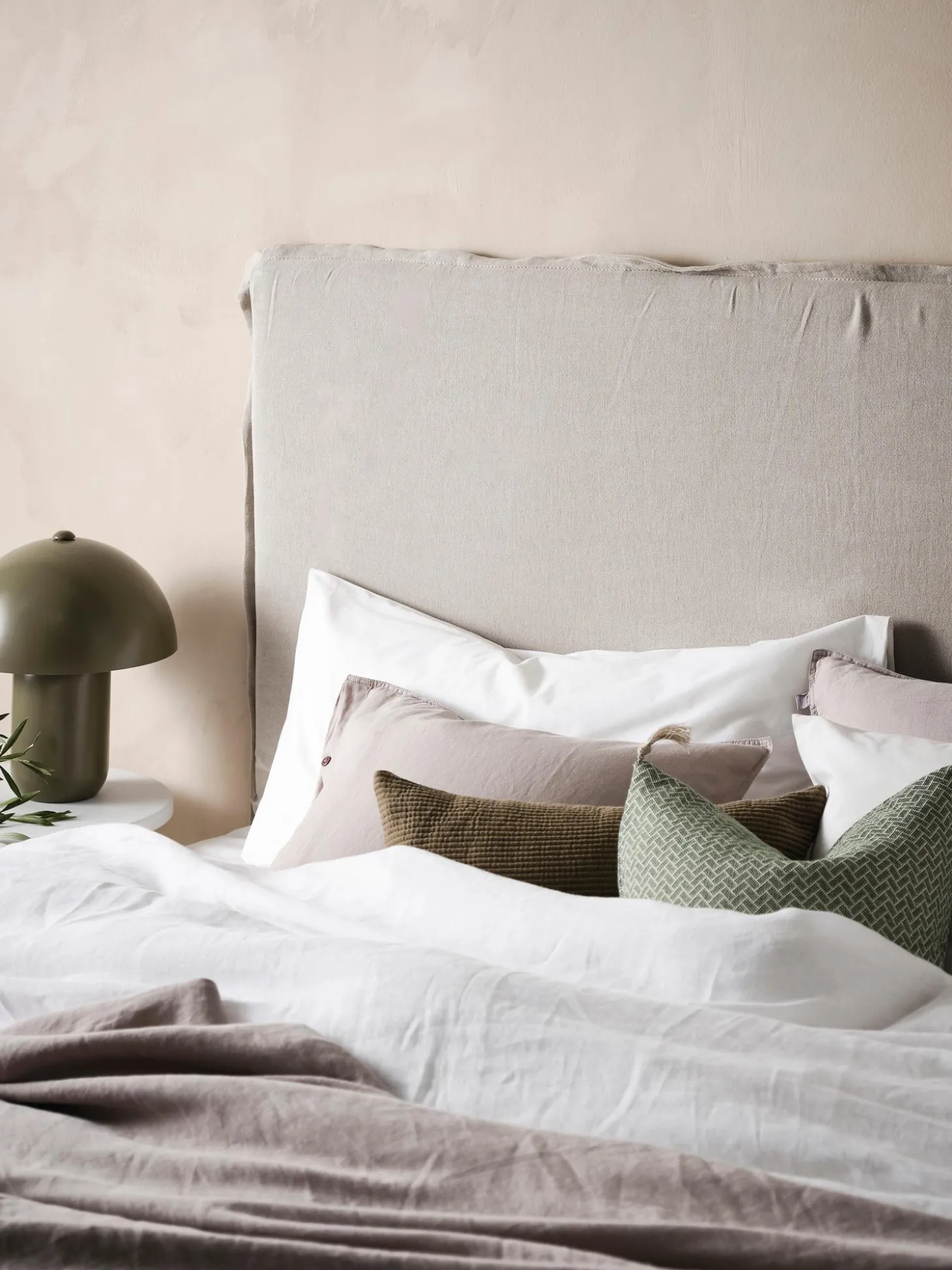La Testiera Palma Aggiunge Un Look Fresco A Qualsiasi Stanza. Il Tessuto Di Lino Fa Sembrare Tutto Casual, Quindi Anche Un Letto Sfatto Non Distrae