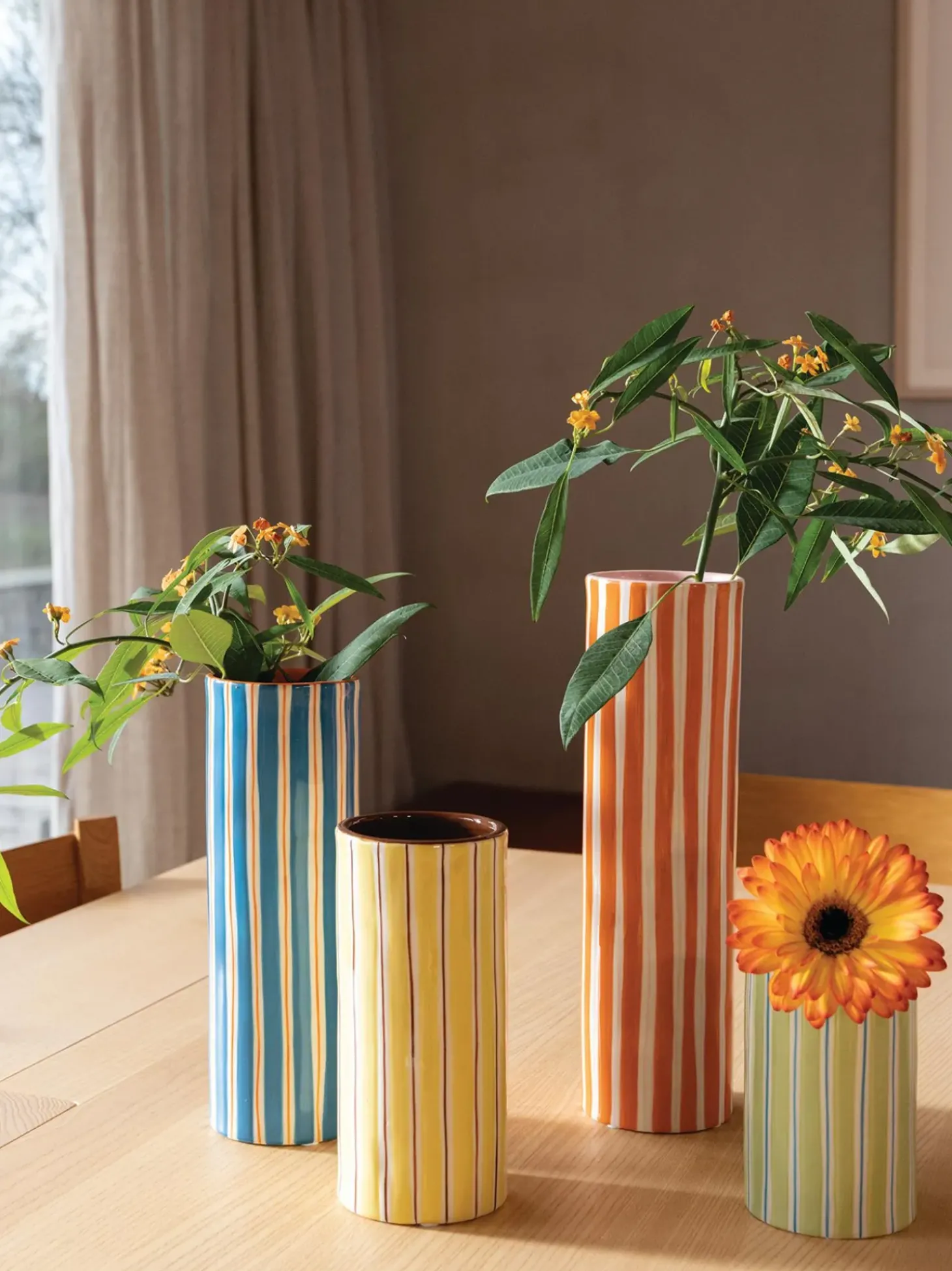 Questo Vaso A Righe U00E8 Stato Progettato Per Aggiungere Stile A Qualsiasi Tavola. Il Motivo A Righe U00E8 Dipinto A Mano E Ha Una Forma Irregolare, Conferendo Al Vaso Un Design Unico.